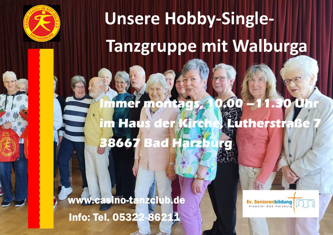 Unsere Single Tanz Gruppe trifft sich montags von 10 bis 11.30 Uhr im Haus der Kirche. Zusammen mit der Evangelischen Erwachsenenbildung bieten wir diesen Tanzkreis an. Trainerin ist Walburga