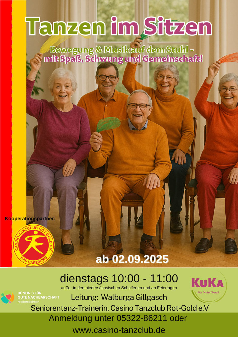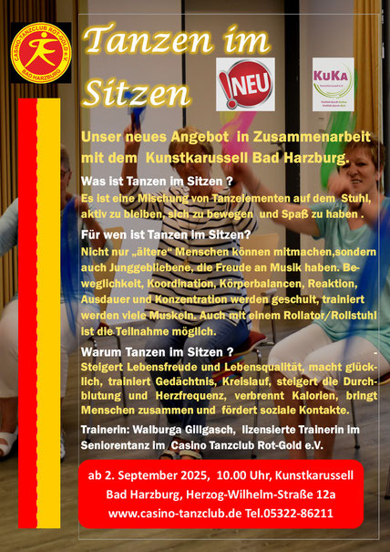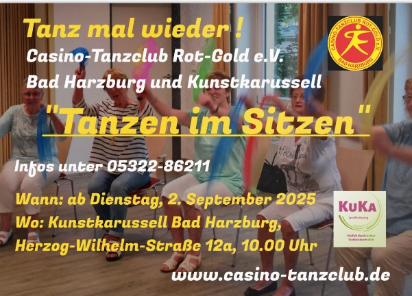 Unsere neue Gruppe "Tanzen im Sitzen" startet zusammen mit dem Kunstkarussell in der Herzog Wilh.-Strasse 12 a um 10 Uhr ab Dienstag, 2.9.2025 - immer von 10 - 11 Uhr.